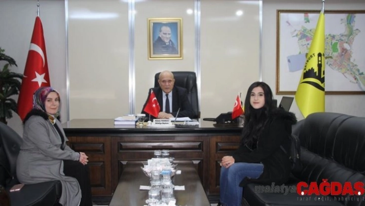 Üniversite öğrencileri Aslıhan Anezoğlu ile Sümeyye Sancak, Belediye Başkanı Hükmü Pekmezci'yi ziyaret etti.