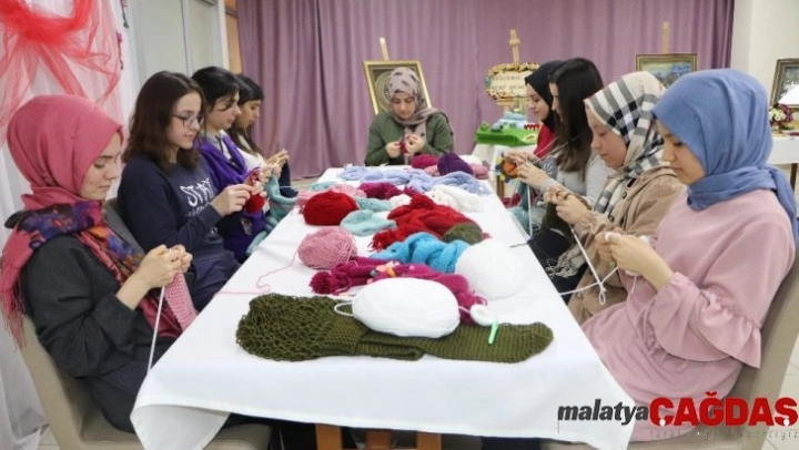 Samsun Kredi Yurtlar Kurumunda (KYK) kalan üniversite öğrencileri kırsal mahallerde bulunan ihtiyaç sahibi çocuklar için atkı, bere ve eldiven üretiyor.