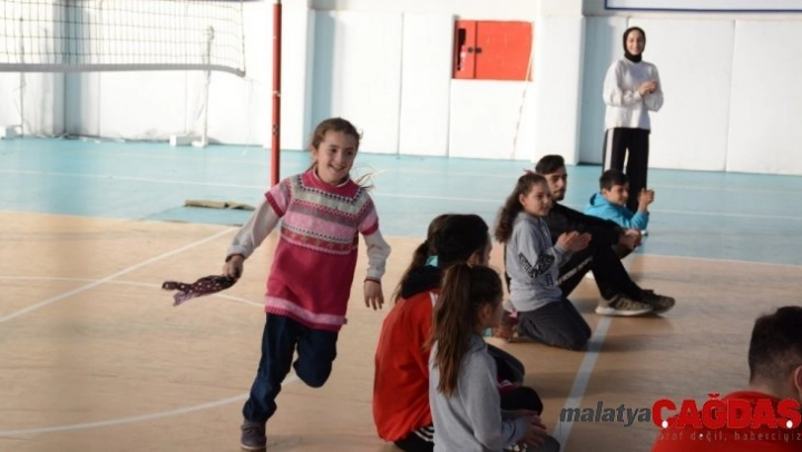 Düzce Üniversitesi Kapalı Spor Salonu'nda gerçekleştirilen ve Öğr. Gör. Pelin Ustaoğlu Hoşver'in verdiği derste; misafir öğrencilerle tanışan Düzce Üniversitesi öğrencileri, minik öğrencilere geleneksel oyunları tanıtarak, onlarla birlikte oyunlar oynadı.