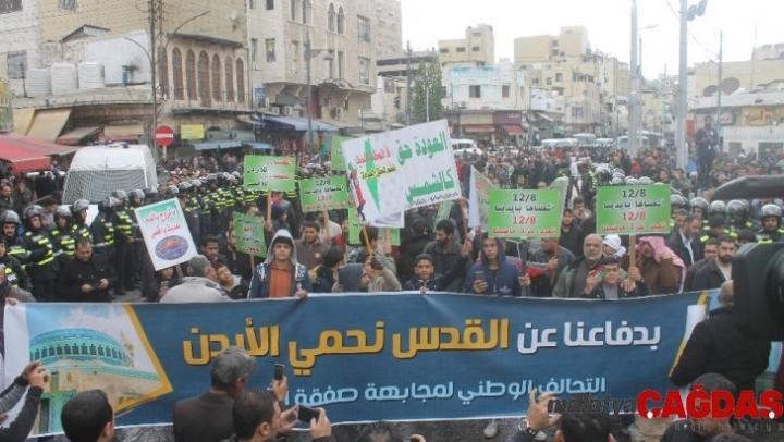 Ürdün'ün başkenti Amman'da binlerce kişi Hüseyni Camii önünde Filistin'e destekle protestosu için toplandı. Eyleme katılanlar, Filistin mücadelesine destek sloganları atıp, İsrail'in Filistin mücadelesine karşı çabaları kınandı. Sokaklara dökülen göstericiler,