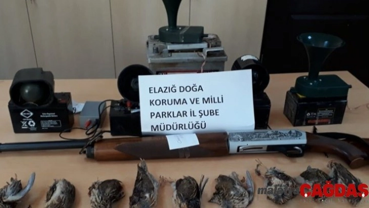 Edinilen bilgiye göre, Doğa Koruma ve Milli Parklar Elazığ Şubesi ile birlikte İl Jandarma Komutanlığı'na bağlı ekipler, av koruma kontrol çalışması gerçekleştirdi. Ekiplerin çalışmasında 2'si yabancı uyruklu 8 şahıs usulsüz avlanırken yakalandı. Yakalanan şahısların tüfeklerine el konulurken, çok sayıda bıldırcın sesi çıkartan cihaz ile birlikte avlanan bıldırcın ele geçirildi.