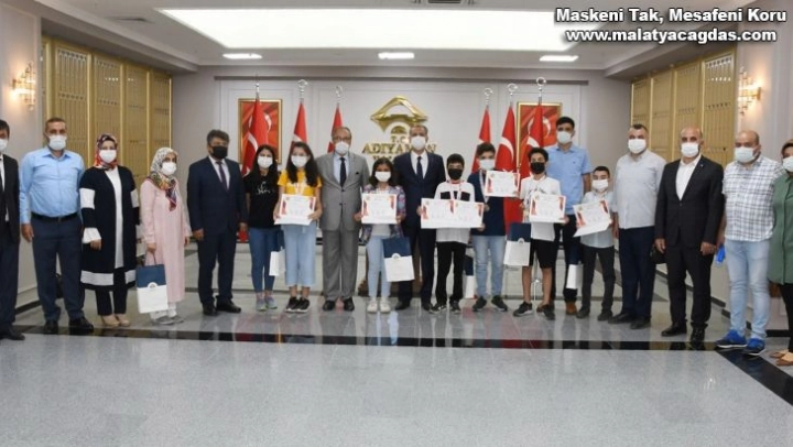 Adıyaman Valisi Mahmut Çuhadar, 11 ülkenin katılımıyla internet üzerinden online olarak düzenlenen 17. Uluslararası Bilim Temelleri Bilgi Yarışması' matematik, biyoloji ve İngilizce kategorilerinde birincilik elde ederek altın madalya kazanan Adıyaman Bilim Sanat Öğrencileri'ni kabul etti.