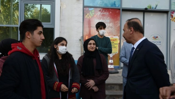 Hilvan Gençlik Merkezindeki çeşitli eğitim kurslarına devam eden gençlerle bir araya gelen Vali Erin, gençlerle sohbet ederek başarılar diledi.