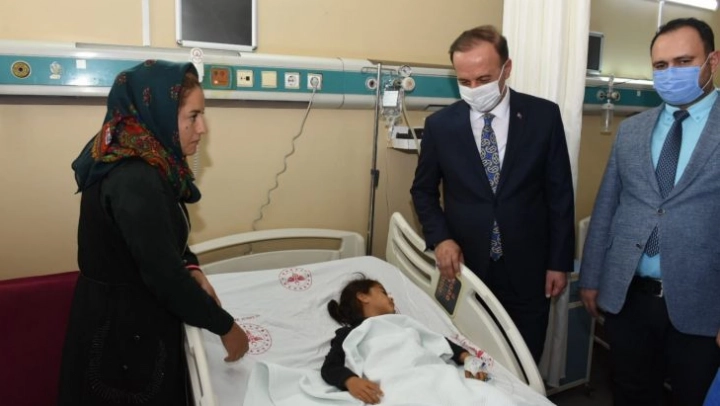 Vali Erin, kazada yaralanan küçük kızı hastanede ziyaret etti