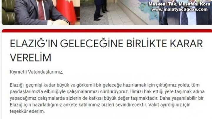 Vali Erkaya Yırık'tan 'Elazığ'ın geleceğine birlikte karar verelim' anketi