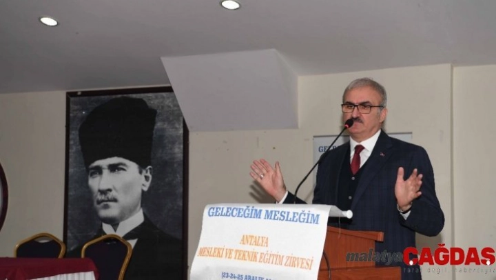 Antalya Valisi Münir Karaloğlu, 'Mesleki eğitim meselesi çok acil memleket meselesi haline gelmiştir. Nitelikli çalışan arayan binlerce işletme var. İnsanımızı nitelikli hale getirmemiz lazım. Biz ne olursa olsun üniversite mezunu olalım sonrada birileri bize iş bulsun anlayışıyla yola devam edemeyiz' dedi.