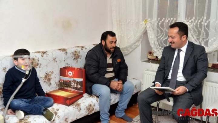 Bilecik Valisi Bilal Şentürk, Bozüyük ilçesindeki Musküler Distrofi (DMD) kas hastalığı nedeniyle makineye bağlı yaşayan 9 yaşındaki Onur Arıkız'ı evinde ziyaret etti.
