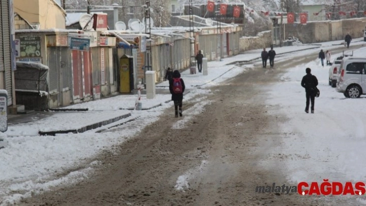 Van'ın Başkale ilçesinde etkili olan kar yağışı ilçe merkezini beyaza bürüdü.