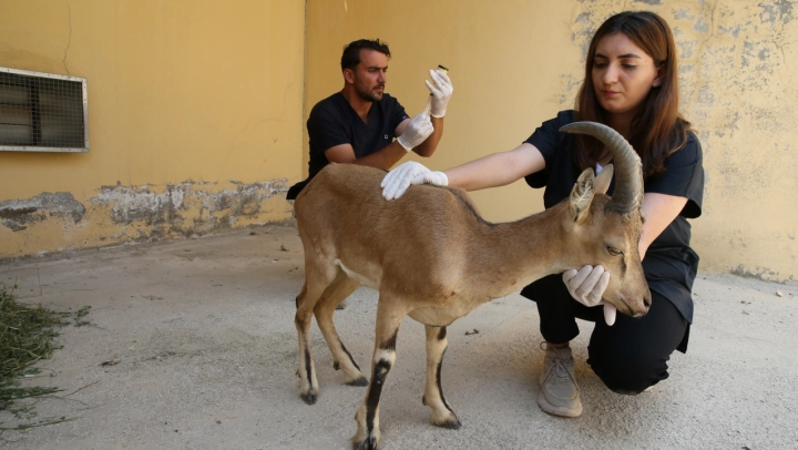 Yaban keçisi yavrusunun koruma altına alındığını belirten Aslan,'Merkezde tedavisine yönelik ilk müdahaleler yapıldı. Hayvanda bitkinlik durumu vardı. Yüksekten düşmeye bağlı beyin travması ve akciğerlerinde enfeksiyon şekillenmiş. Tedavisinden sonra doğaya salınacak.' dedi.