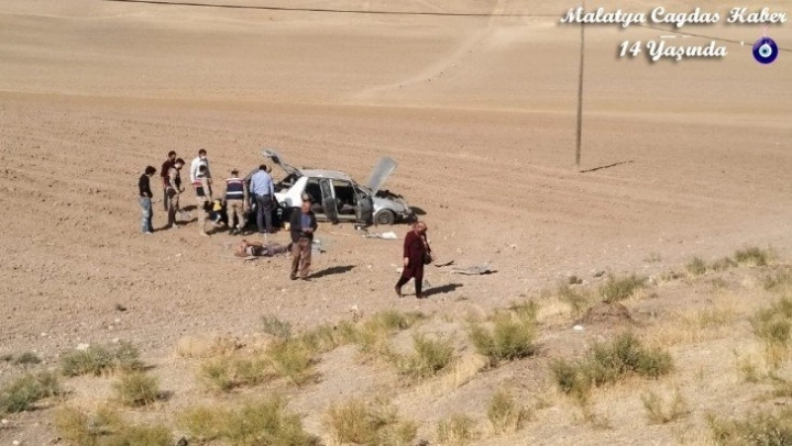 Malatya'da virajı alamayan otomobil yoldan çıkarak takla attı. Feci kazada 3 kişi yaralandı.