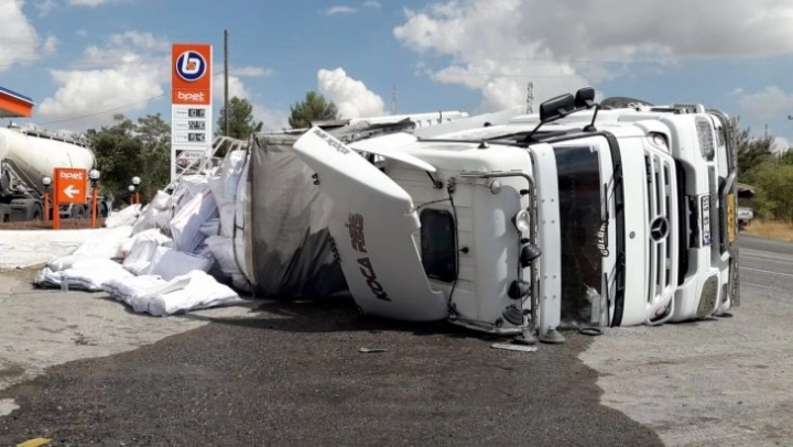 Kaza, gece geç saatte Adıyaman Gölbaşı karayolu Börgenek rampasındaki virajda meydana geldi. Enis Büyükaksoy yönetimindeki 42 SB 615 plakalı çuval yüklü tır Adıyaman istikametinden Gölbaşı yönüne giderken virajı alamayarak yan yattı.