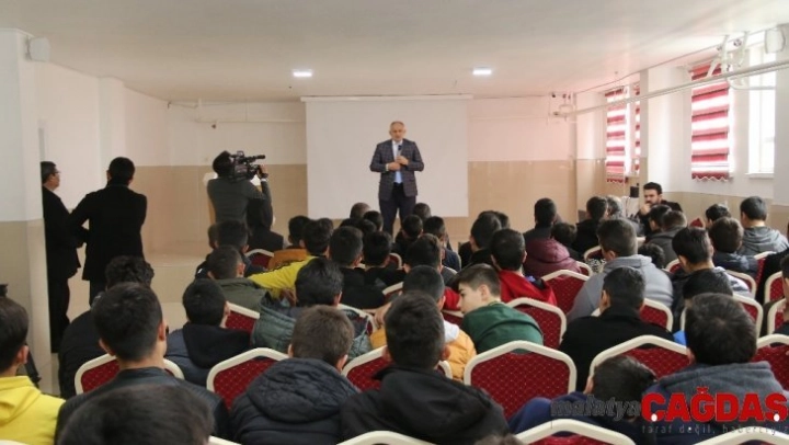 Mustafa Koyuncu Anadolu İmam Hatip Lisesi'nde yapılan seminerde konuşan Yahyalı Belediye Başkanı Esat Öztürk, belediye olarak tek işlerinin imar, yol, kaldırım yapmak olmadığını, bu türlü eğitim seminerleriyle sosyal belediyecilik alanında da çalışmalar yaptıklarını söyledi. Belediye olarak gelecek nesilleri, sağlıklı beslenme konusunda bilinçlendirmek istediklerini belirten Başkan Öztürk; ' Belediyeler, doğana beşik, ölene mezardır. Belediyeyi iki tane tren rayına benzetirim. Birincisi Teknik Belediyecilik, ikincisi ise Sosyal Belediyeciliktir. Sosyal Belediyecilik kapsamında bugün bir araya geldik. Belediye olarak sizlerin sağlığını önemsiyoruz. Ben her zaman belediyeler bir para basmaz, bir de adam asmaz diye söylerim. Yani belediye yasamız oldukça geniştir. Okullarımıza, hastanemize, postanemize kısacası birçok kurumumuza birçok güzelliklerimiz olur. Bu sadece Yahyalı Belediyesi için değil, eğer içinizde bir gayret varsa, insanlara hizmet etme aşkı varsa Türkiye'deki tüm belediyelerde geçerlidir. Türk genci olarak, sağlıklı olmak zorundasınız. Sağlığınız bizler için çok çok önemli. Bu çalışmaya ' Sağlıklı yaşama dokunuyoruz' sloganı ile başladık. Bugünkü seminer gerçekten çok önemliydi. Ne zaman sağlığımız bozulsa, yatağa düşsek, sağlığımızın kıymetini daha iyi anlıyoruz. Bugün size vereceğim en büyük mesaj, sağlıklı beslenmeye ve sağlıklı yaşamaya dikkat edelim. Yeryüzünün bize ihtiyacı var. Hem Türki Cumhuriyetlerdeki soydaşlarımızın, hem de İslam Coğrafyasındaki dindaşlarımızın Türk Gençliğine ihtiyaçları var. Bu dünyanın bize ihtiyacı var. Bu nedenle biz sağlıklı olmak, sağlıklı beslenmek zorundayız. Mutlaka sevdiğiniz ve yaptığınız bir spor dalı olsun' ifadelerini kullandı.