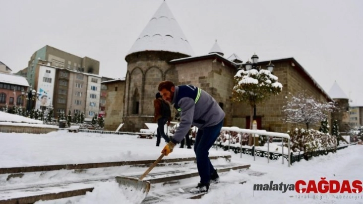 Yakutiye Belediyesi karla mücadelede yoğun mesai başlattı