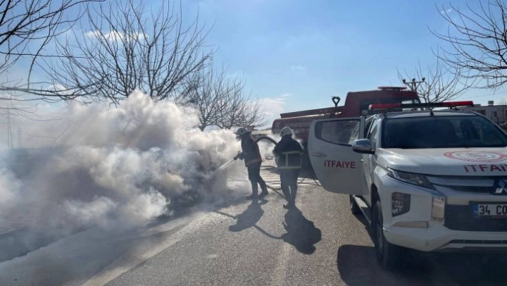 Edinilen bilgiye göre olay, Şanlıurfa'nın Suruç ilçesinde yaşandı. Nasır K.'nin kullandığı 02 DE 297 plakalı otomobil, içerisinde eşi ve 2 küçük çocuğu olduğu sırada seyir halindeyken aniden alev aldı. Motor kısmından yükselen alevler, otomobildekilerin yüzünü yaktı. Güvenlik kamerasına da yansıyan görüntülerde yolda duran sürücü, eşi ve çocuklarını çıkartıp otomobilden uzaklaştırdıktan sonra yan taraftaki şantiyeye giderek yardım istedi. Şantiyedeki yangın söndürme tüpüyle müdahale edilen alevler söndürülemeyince itfaiyeye haber verildi. Olay yerine giden itfaiye ekipleri, alevlere müdahale etti. Müdahale sırasında çevredekiler, otomobilin LPG'li olduğunu söyleyerek görevlileri dikkatli olmaları konusunda uyardı. İtfaiyenin müdahale ederek söndürdüğü yangında otomobil kullanılamaz hale gelirken son anda kurtulan anne ve 2 çocuğu ise alevlerin yüzlerine etki etmesi nedeniyle hastaneye götürüldü.