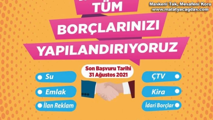 Konu ile ilgili bilgi veren belediye yetkilileri, 'Hükumetimiz tarafından alınan kararla uygulamaya girecek olan yeni yapılandırmadan belediyemize borcu olan vatandaşlarımız da yararlanabilecek. Buna göre, belediyeye su, emlak, ilan-reklam, ÇTV, kira ve idari borcu bulunan vatandaşlarımız, 31 Ağustos 2021 tarihine kadar başvuruda bulunarak borçlarını yapılandırabilecekler' diye konuştu.