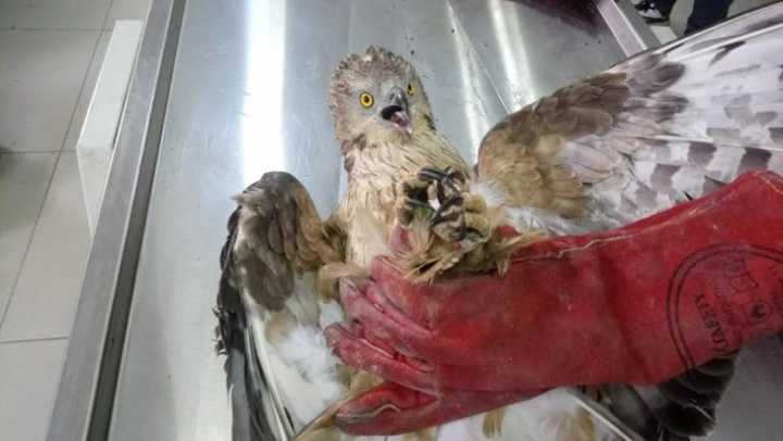 Kars'ta vatandaşlar tarafından yaralı olarak bulunan Arı Şahin'i tedavi altına alındı.