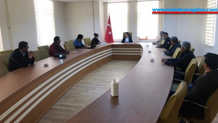 Son dönemlerde dünyayı etkisi altına alan korona virüs salgını nedeniyle, Malatya'nın Yazıhan ilçesinde toplantı düzenlendi. Korona virüsle ilgili alınan tedbirleri görüşmek, Yazıhan'da yapılacak çalışmaları belirlemek ve koordinasyonu sağlamak üzere, Kaymakam Güher Sinem Büyüknalçacı başkanlığında, İlçe Emniyet Amir Vekili Hakan Yeter, İlçe Jandarma Komutanı Mehmet Çınar, Şehit Eyüp Hacioğlu İlçe Devlet Hastanesi Başhekimi Nur Demir Kaplan ve mahalle muhtarlarının katılımı ile bilgilendirme ve değerlendirme toplantısı yapıldı.