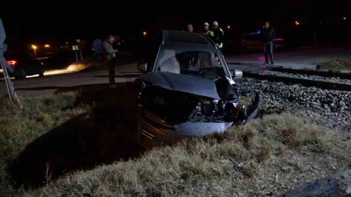 Yük treni hemzemin geçitte otomobile çarptı: 5 yaralı