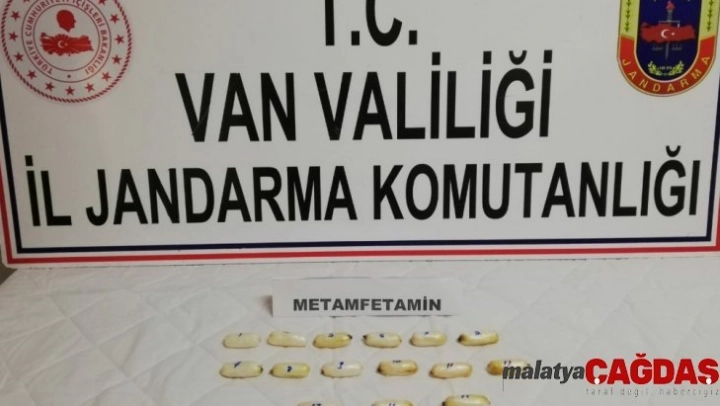 Muradiye ilçesindeki Alparslan Jandarma Karakol Komutanlığı ekiplerince Van-Erciş karayolu üzerinde icra edilen yol emniyet ve kontrol faaliyeti esnasında, durdurulan yolcu otobüsünde seyahat eden Afganistan uyruklu şahsın üzerinde ve eşyalarında arama yapıldı. Yapılan aramada, şüpheli şahsın sırt çantası içerisinde 15 adet streç film ile sarılmış vaziyette 170 gram metamfetamin ele geçirildi. Yapılan incelemede, uyuşturucunun şahıs tarafından önce yutulduğu sonrasında ise çıkartılarak çanta içerisinde taşınmaya devam edildiği anlaşıldı.
