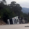 Ankara'nın Nallıhan ilçesinde Aynalikaya Geçidi yakınlarında devrilen tırın sürücüsü yaralandı.