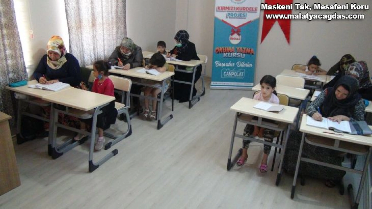 Şanlıurfa'da Haliliye Belediyesi tarafından hayata geçirilen 'Kırmızı Kurdele Projesi' ile açılan kurslarda, kadınlar okuma yazmayı hem eğitmenlerin hem de çocuklarının desteği ile öğreniyor.