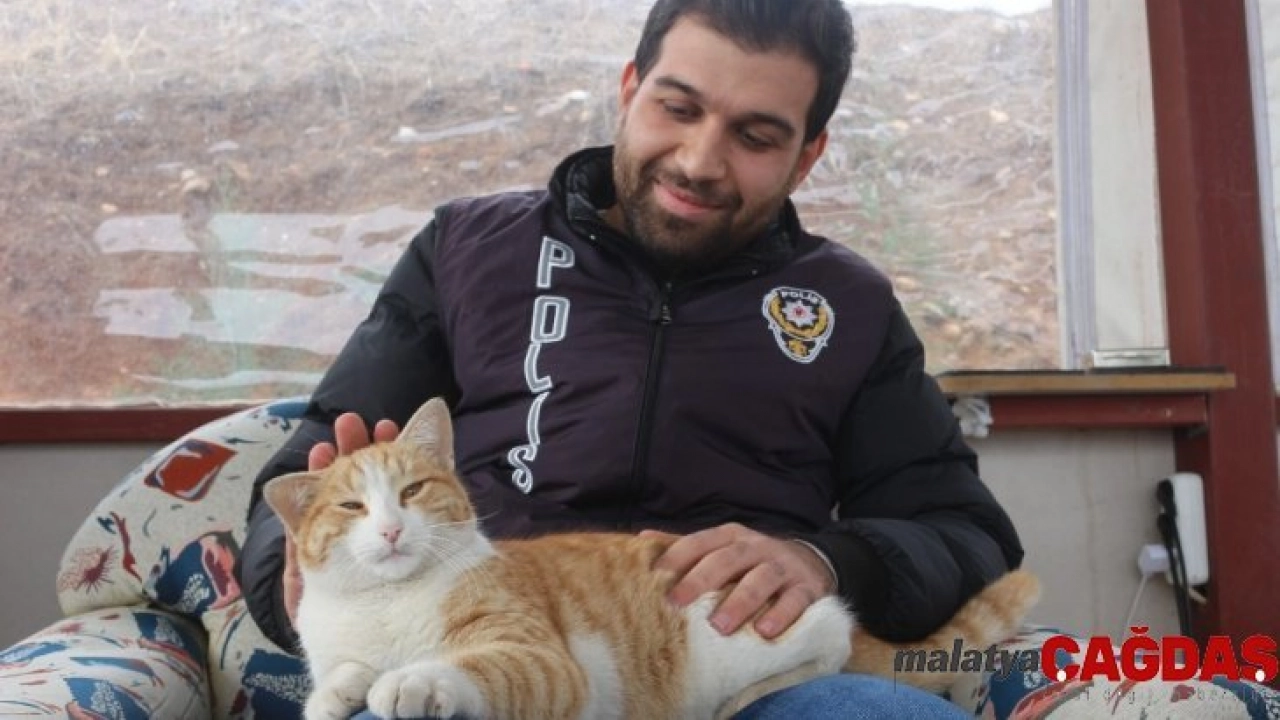Adıyaman’da, annesini kazada kaybeden yavru kedi, kendisini büyüten polislerin biran olsun yanından ayrılmıyor.