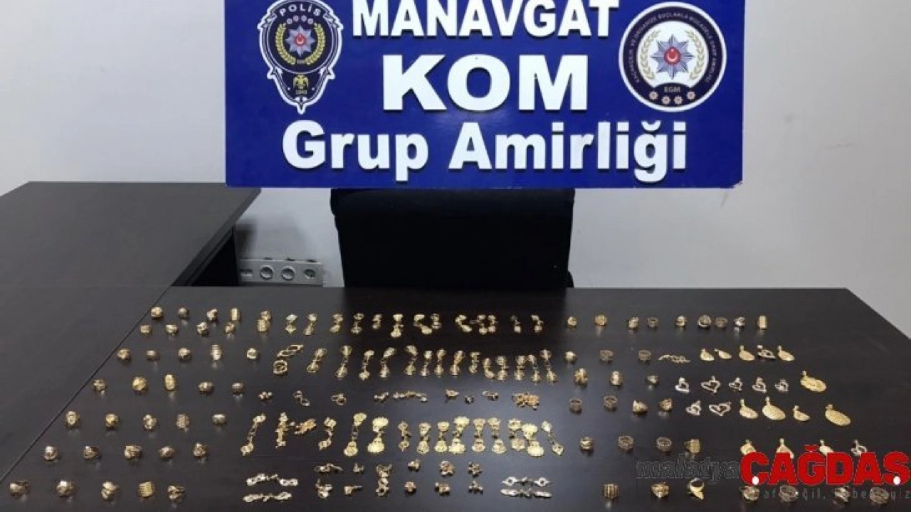 Manavgat Kaçakçılık ve Organize İşlerle Mücadele (KOM) ve Terörle Mücadele Büro Amirliği ekiplerince, durumundan şüphelenilen bir araç durdurularak, araçta inceleme yapıldı. Araçta bulunan Suriye uyruklu M.S.’den 65 parça gümrük kaçağı altın yüzük, 81 çift altın küpe, 21 adet altın kolye ve 1 adet altın isimlik olmak üzere, toplam 168 parça 598,01 gram gümrük kaçağı altın ele geçirildi.