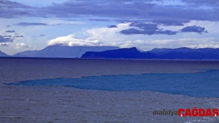Antalya’da dün etkili olan sağanak ve şiddetli rüzgar sonrası denize ulaşan çamur, Antalya Körfezini iki ayrı renge bürüdü.