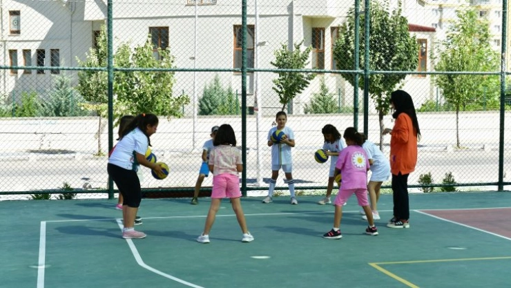 Yeşilyurt Belediyesi Gençlik ve Spor Hizmetleri Müdürlüğü bünyesinde faaliyete geçen Yaz Spor Okulları kapsamında açılan voleybol kursu büyük ilgi görürken, kursiyerlere voleybolun temel teknikleri öğretiliyor.