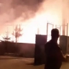 Apartmanın bahçesinde çıkan yangın geceyi aydınlattı