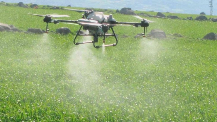 Dronlu ilaçlama denemesinde konuşan Ziraat Odası ve Sarımsak Üreticileri Birliği Başkanı Hasan Altun, ’’Dron ile sarımsak, buğday, nohut ve pamuk tarlalarında rahatlıkla ilaçlama yapılabilinir. Tarlaya düşen ilaç miktarını da düşürerek daha az ilaçla daha fazla yer ilaçlanabiliyor. Tarım alanları dronla ilaçlandığında yüzde 20 daha az ilaç kullanımı yapıldığını tespit ettik. Çünkü atılan ilaç bitkiye daha çok etki yapıyor. Ekonomiye önemli katkı sağlıyor. Dronla yabancı ot ilaçlamalarından, mantar ilaçlamalarına böcek ilaçlamasına kadar her türlü yukardan ilaçlama yapılabilinir. Burada asıl hedef bitki sağlığını takip edip sağlıksız olan alanları dron ile noktasal ilaçlama yapıldığını uygulama anında çiftçilerimiz ile birlikte gördük. Çiftçilerimiz ile birlikte izleyip bilgiler aldığımız Dron ile ilk deneme ilaçlaması uygulaması çiftçilerimiz ile bizleri olumlu etkiledi. Araban Ovası’nda yetişen ve ünü ülke sınırlarını aşan sarımsak, makarnalık sert buğday ve onlarca tarım ürünleri alanında kullanma kararı aldık’’ ifadelerine yer verdi.