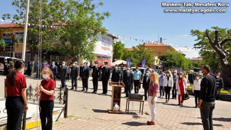 Maske takarak ve sosyal mesafe kurallarına uyularak gerçekleşen anıt önündeki törene, İlçe Milli Eğitim Müdürü Hasan Yay, İlçe Belediye Başkanı Vekili Aktan Güler, İlçe Emniyet Amiri Mehmet Yıldırım, İlçe Jandarma Komutanı Ali Ayva, öğretmenler, vatandaşlar ve siyasi parti temsilcileri katıldı