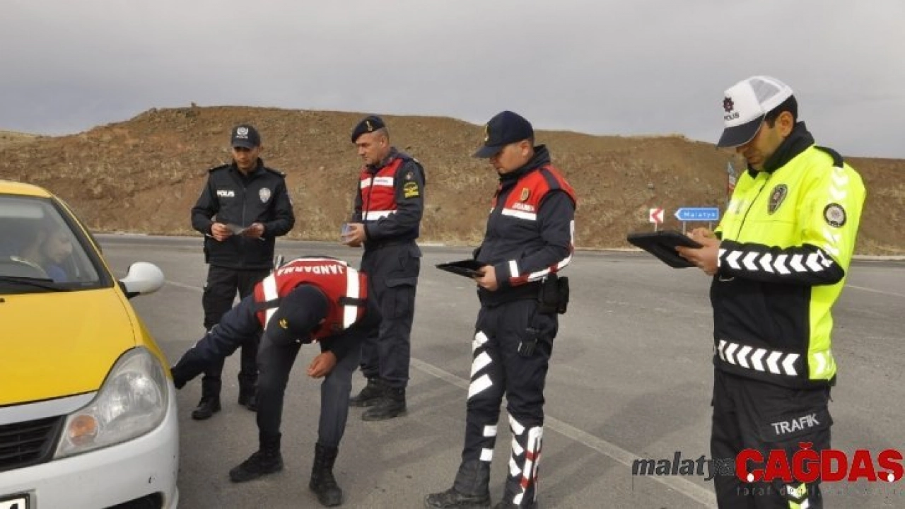 Malatya'nın Arguvan ilçesinde trafik ekipleri, kış Lastiği uygulamasında sürücülere 'Doğru Mevsim Doğru Lastik' broşürü dağıttı.
