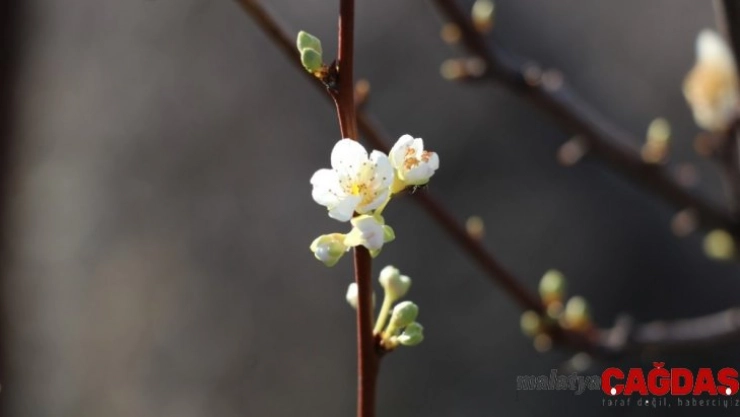 Armut ve erik ağaçları kış ortasında çiçek açtı