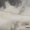 Artvin’in Yusufeli ilçesi Sebzeciler köyünde yaşanan heyelanda kopan dev kayalar baraj göletine düşerken, o anlar köy muhtarı tarafından görüntülendi.