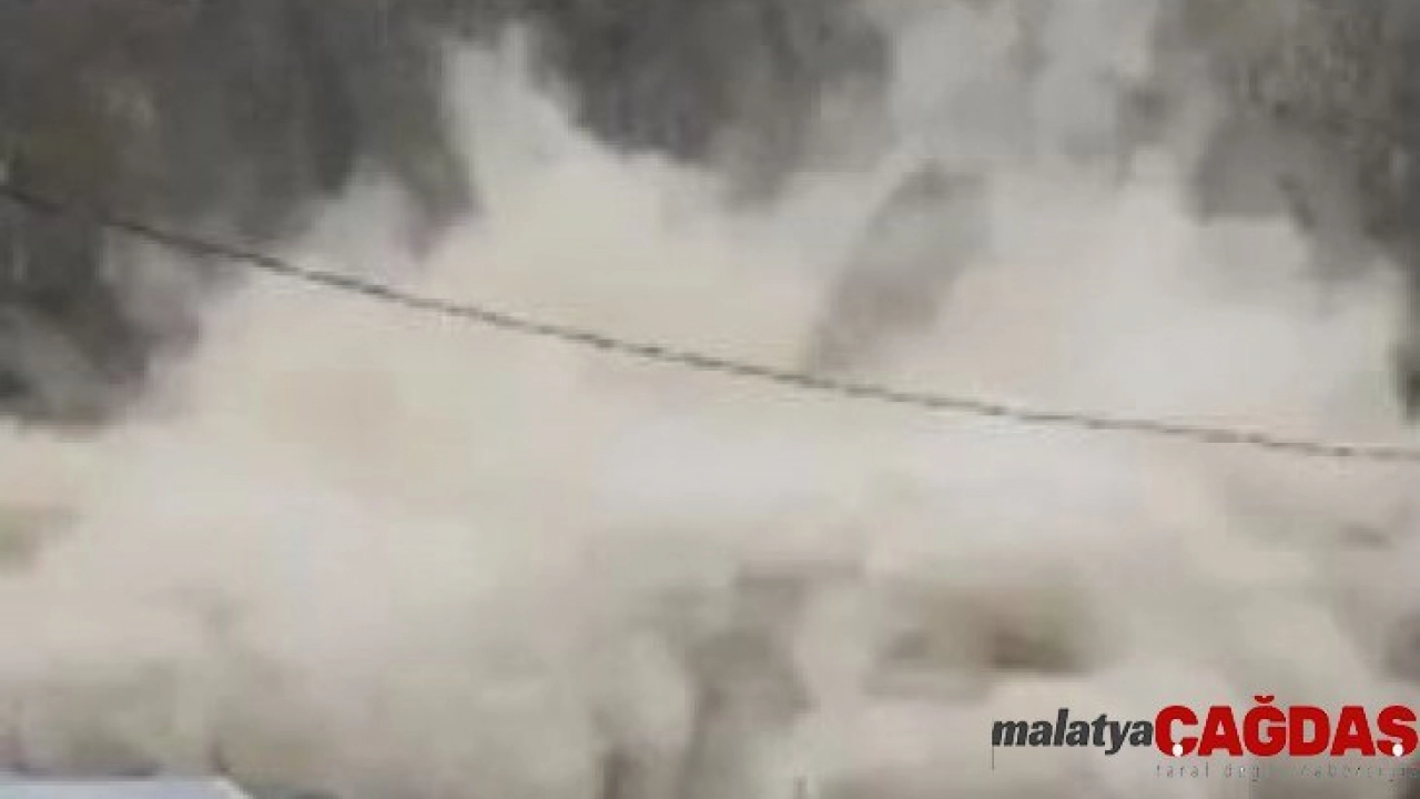 Artvin'in Yusufeli ilçesi Sebzeciler köyünde yaşanan heyelanda kopan dev kayalar baraj göletine düşerken, o anlar köy muhtarı tarafından görüntülendi.