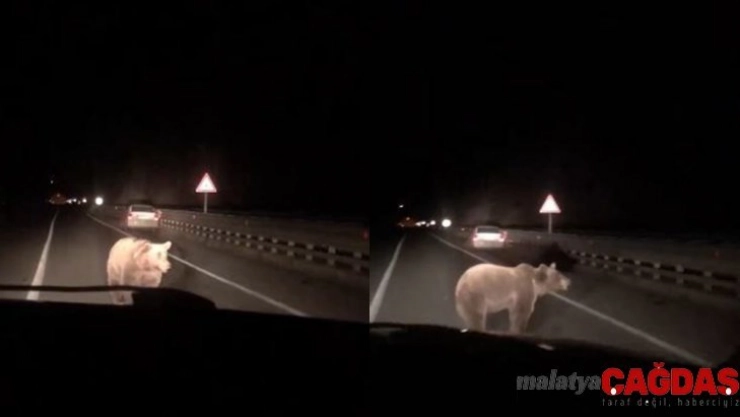 Artvin’de aniden yola inen boz ayıya otomobil çarptı. Yaralanan ayı karayolunda uzun bir süre bekledi. Araçlarından inemeyen sürücüler ise ayının uzaklaşmasını bekledi.