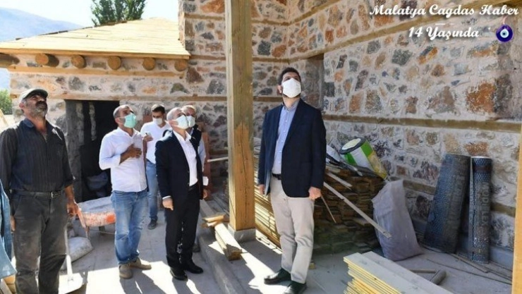Yeşilyurt Belediye Başkanı Mehmet Çınar, beraberinde Yeşilyurt Belediye Başkan Yardımcısı Şahin Özer ve Kadircan Esen’in yanı sıra Aşağıköy Mahalle Muhtarı Mehmet Ali Durmaz ile birlikte, restorasyonu çalışmaları büyük oranda tamamlanan tarihi Hacı Bekir Caminin iç ve dış alanlarında yapılan çalışmaları yerinde inceledi.