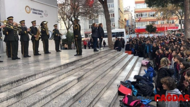 Sahra Sıhhiye Okulu ve Eğitim Merkezi Bölge Bando Komutanlığı Bando Ekibi okula otobüsle gelerek okul bahçesinde bekleyen öğrencilere sürpriz yaptı. Okul bahçesinde İstiklal Marşı’nı okumak için toplanan öğrenciler önce yapılan konserlerle eğlendi. Daha sonra bando ekibinin çaldığı İzmir Marşı ve Hayat Bayram Olsa gibi parçalarla coşku dolu anlar yaşadı. Her pazartesi ve cuma günleri okudukları İstiklal Marşı’nı ise bu kez askeri bando eşliğinde söylediler.