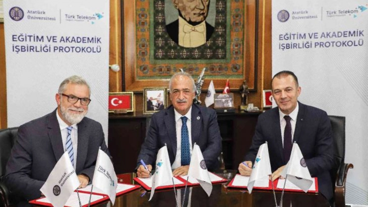 Atatürk Üniversitesi ile Türk Telekom arasında iş birliği anlaşması imzalandı. Rektörlük makamında gerçekleşen imza törenine Rektör Prof. Dr. Ömer Çomaklı, Türk Telekom İnsan Kaynakları Genel Müdür Yardımcısı Mehmet Emre Vural ile Türk Telekom Teknoloji Genel Müdür Yardımcısı Yusuf Kıraç katıldı. Gerçekleştirilen iş birliği ile Türk Telekom öğrencilere kariyer gelişimlerini destekleyecek eğitim, burs, staj ve istihdam imkanları sunarken, program koşullarını sağlayan Türk Telekom çalışanları da Atatürk Üniversitesinin sunduğu lisansüstü programlara katılabilecek. Öğrencilerin ürün ve servis oluşturmada deneyim kazanmalarına destek sağlayacak üniversite-sanayi iş birliğinin bu önemli örneği, test ve yazılım geliştirme çalışmalarında da gençlerin erken dönem tecrübe kazanmalarına yardımcı olacak. 5 yıl boyunca devam edecek anlaşma çerçevesinde mühendislik fakülteleri ile ortak Ar-Ge faaliyetleri, sempozyumlar, kongreler, seminerler, webinarlar, makale ve bildiriler gibi bilimsel süreçler dahil olmak üzere birçok alanda çalışmalar yapılacak, öğrencilerin akademik gelişimlerine ve kariyerlerine destek olunacak.