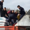 Konya'da kamyonun kasasına yem çuvallarını dizerken halatları kopan taşıma bandının düşmesi sonucu ayak bileği kırılan işçi, kepçeyle kamyon kasasına çıkan 112 acil sağlık görevlilerinin müdahalesinin ardından yine kepçeyle aşağıya indirildi.