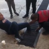 Ayağı mazgala sıkışan genci itfaiye kurtardı