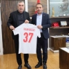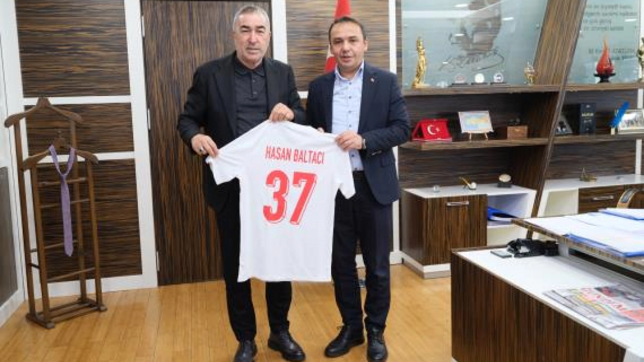 Ziyaret sonunda Samet Aybaba, genç futboluna verdikleri destekten dolayı Belediye Başkanı Hasan Baltacı’ya teşekkür ederek Millî Takım formasını hediye etti.