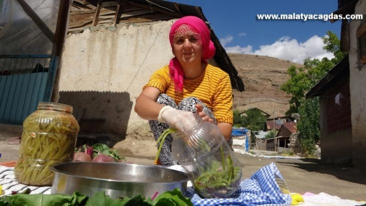 Cennet Kılıç ise, “Becek turşusu kuruyoruz. Bahçemizden topladık. Bizim yaptığımız organik oluyor diğer turşulara benzemiyor çünkü onlarda katkı malzemesi var. Biz bunu kendimiz üretiyoruz. Kendi üretimimiz olduğu için her şey organik ve doğal. Odun ateşiyle pişiriyoruz. Saklama ömrü katkısız olmasına rağmen 8-10 ay soğuk yerlerde kilerlerde saklayabiliyoruz. Lezzeti de diğer hazır turşulara göre çok daha güzel çünkü organik" diye konuştu.