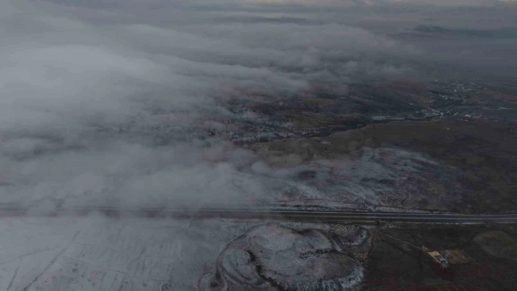 Elazığ’ın 4 bin yıllık Harput Mahallesi’nde kar yağışı başladı. Harput’a bağlı Nuralı köyünde dron ile kaydedilen görüntülerde, aynı rakımda hem karla kaplı alanlar, hem kar yağmayan bölgeler hem de yoğun sis dikkat çekti.