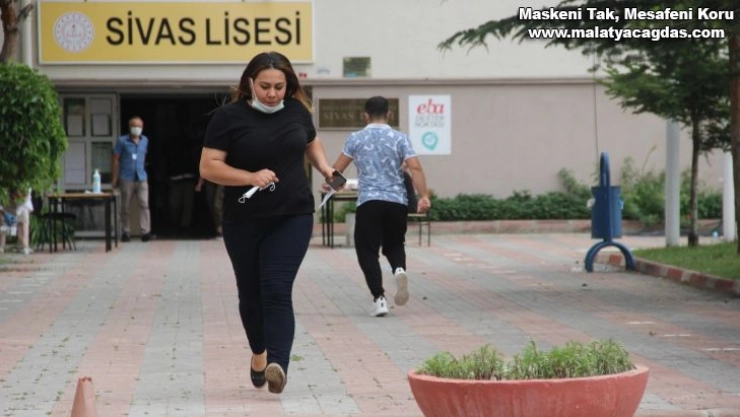 Sivas’ta korona virüs tedbirleri altında düzenlenen sınavda adaylara okul girişlerinde sosyal mesafe uyarısı yapıldı. Okul girişinde dezenfekte istasyonları kurularak, adaylara maske ve su dağıtımı yapılırken, ellerini dezenfekte etmeleri sağlandı.