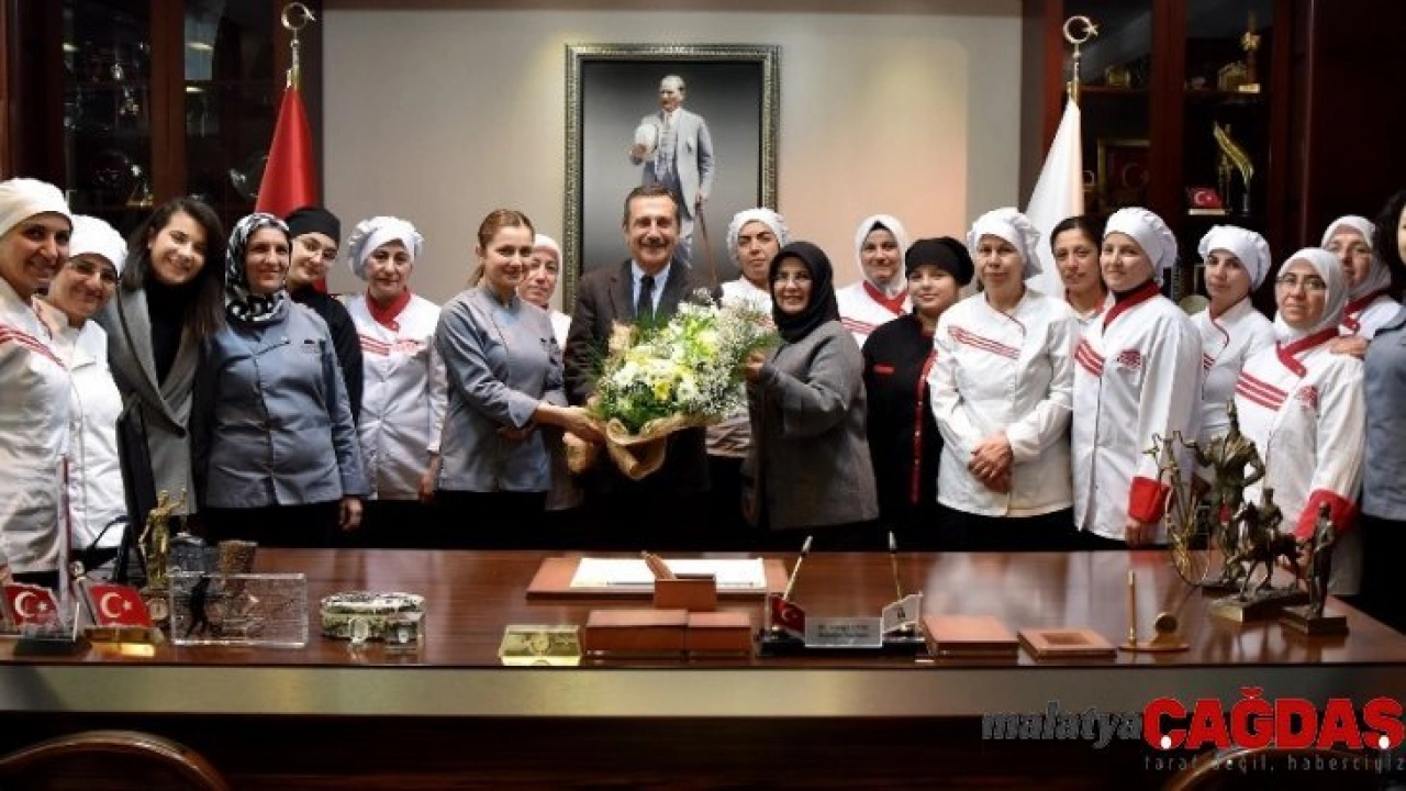 Tepebaşı Belediye Başkanı Dt. Ahmet Ataç'ı ziyaret eden Ayten Usta Gurme Restoran çalışanı kadınlar, dahil oldukları Mavi Bayrak uygulamasından dolayı teşekkür etti.