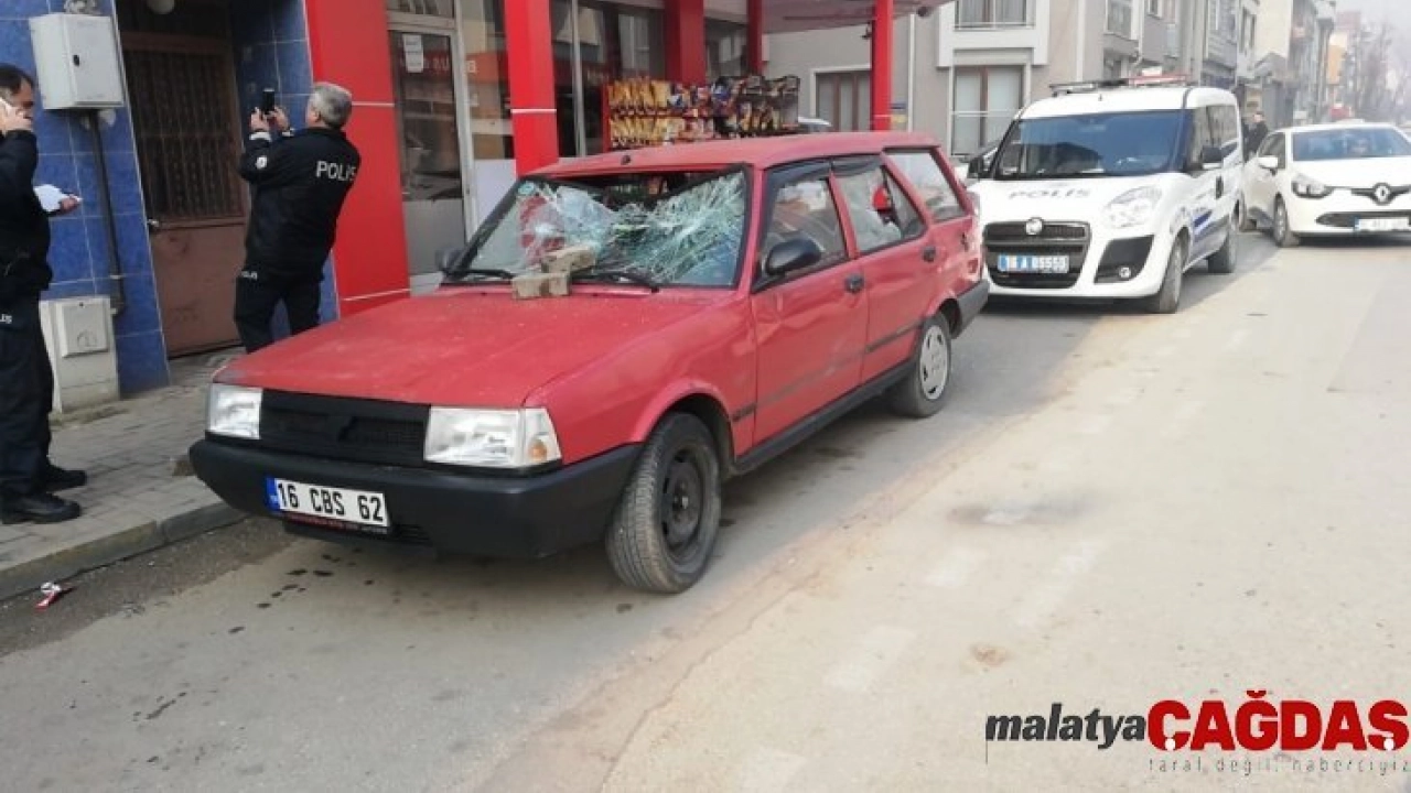 Bursa'nın İnegöl ilçesinde bir genç, babasının arabasına kaldırım taşlarıyla zarar verdi.
