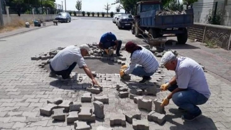 İlçenin yeni yerleşim yerlerinde kaldırım ve parke taşı döşeme çalışmaları yapan ekipler, eski yerleşim yerlerinde ise uzun yıllar yenilenmediği için yapısı bozulan kaldırım ve parke taşlarını yeniliyor.