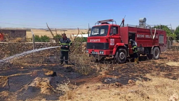 Olay, Besni’ye bağlı Kesecik köyünde meydana geldi. Arif Erdem’e ait bahçede saman balyalarında yangın çıktı. Yangını gören köy sakinleri durumu Besni Belediyesi itfaiye ekiplerine bildirdi. Kısa sürede olay yerine gelen itfaiye ekipleri yangına müdahale ederken, ahıra sıçrayan yangında inek yanarak yaralandı.